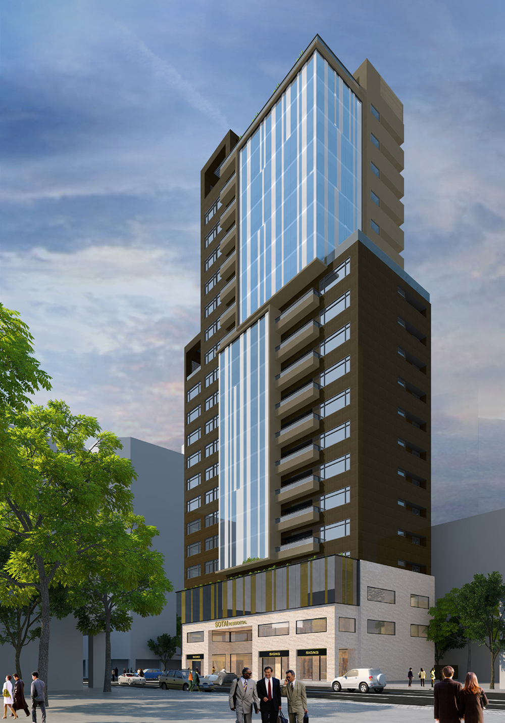Concept : Sotai residential tower places emphasis on movement through the center of the building, The setback lines on the site create a shift in the form of the building so the idea was to continue this language in materiality of façade. Looking up from the streets you get the sense of movement and asymmetry through the center where the main living areas are located.Concept : Sotai residential tower places emphasis on movement through the center of the building, The setback lines on the site create a shift in the form of the building so the idea was to continue this language in materiality of façade. Looking up from the streets you get the sense of movement and asymmetry through the center where the main living areas are located.Concept : Sotai residential tower places emphasis on movement through the center of the building, The setback lines on the site create a shift in the form of the building so the idea was to continue this language in materiality of façade. Looking up from the streets you get the sense of movement and asymmetry through the center where the main living areas are located.Concept : Sotai residential tower places emphasis on movement through the center of the building, The setback lines on the site create a shift in the form of the building so the idea was to continue this language in materiality of façade. Looking up from the streets you get the sense of movement and asymmetry through the center where the main living areas are located.